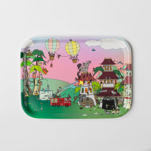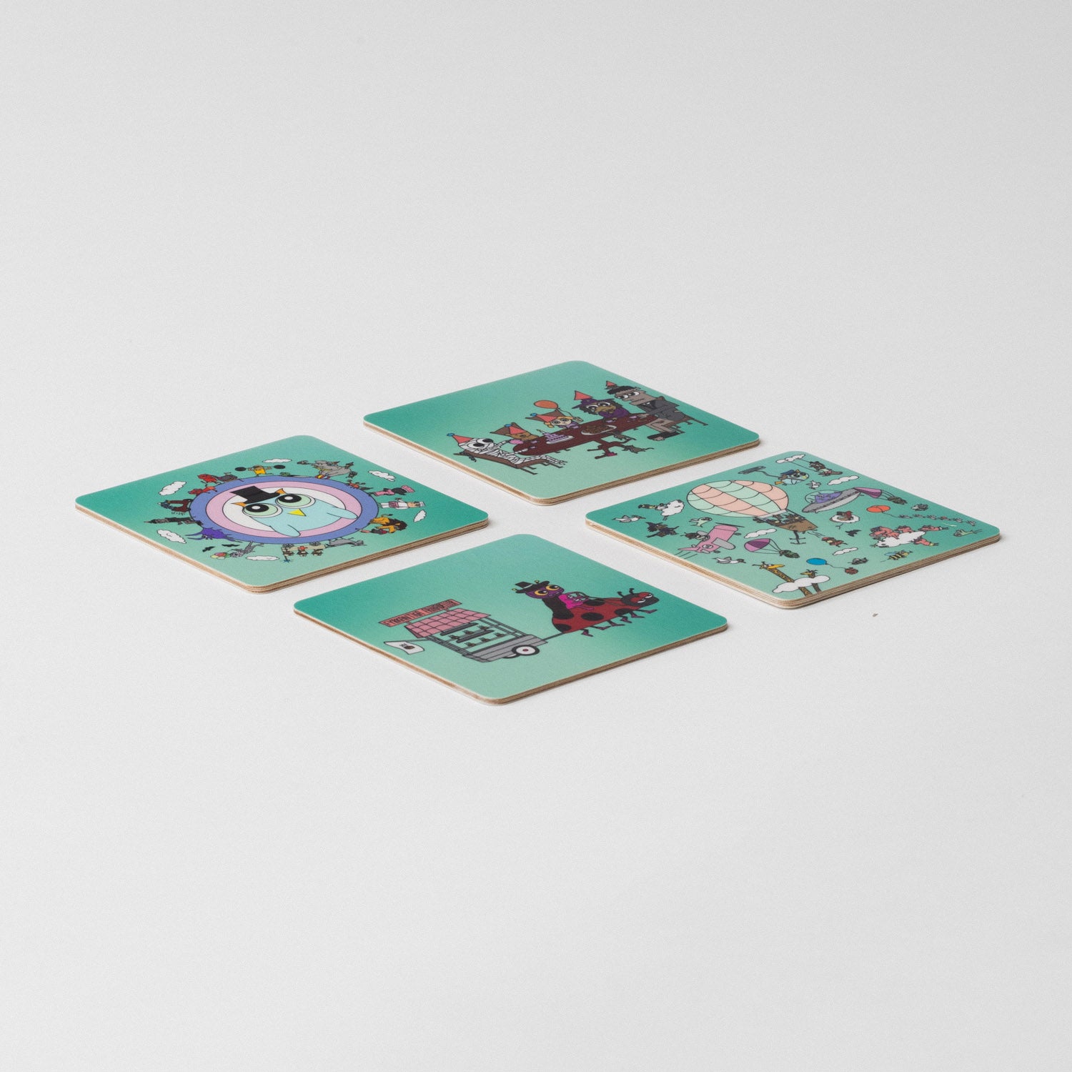 Svensktillverkade brickor av björk som tål det mesta. Finns i en mindre smörgåsstorlek och större kalasformat. Illustrationer och hämtade från Uggla i Hatts bok.